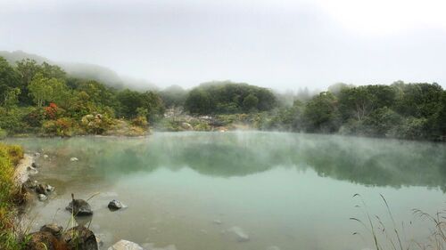 2019.9.24 田子町に向かう途中、 酸ヶ湯を通りすぎ 通り沿いから見える地獄沼へ。 モヤッてるゥ〜〜〜♪ 少しずつ、紅葉してるね 爆裂火口跡ってことで 爆発的な火山活動により、 お山の一部が吹っ飛んでできた火口になります。 その火口の近くから湧き出る温…