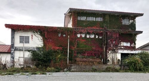 朝ラーの前にせっかく自転車なので 毎日見てはいるけど 車ではゆっくり見られない 街中の紅葉などを見にプラプラ〜 まずは ある廃墟…(笑) 管理者もいますので、 立ち入りは絶対禁止ですよ⁈ 夏の様子 写真に撮るのは難しいけど 実際みると大きな壁画みたいに…