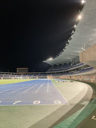 仕事終わりの運動は 施設を利用しましょう! 何年も通ってたのに スタジアムの真ん中が解放されてるの 初めて見た! 栄光の架橋が心の中で流れたよ。 カッコいー カッコいー✨ 上の席からも見てみたいな〜。